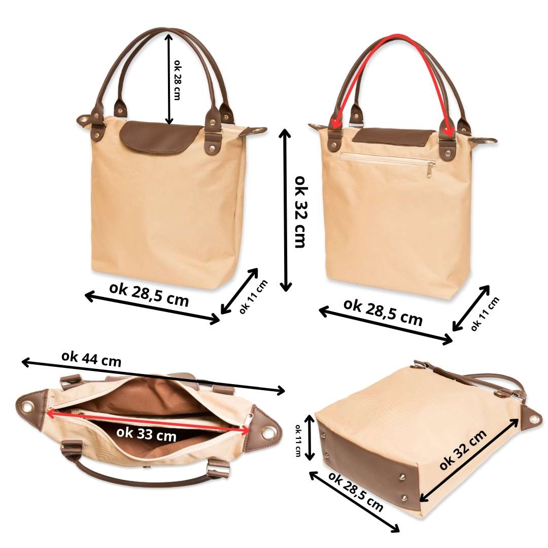 Torba Tamara Shopper Bag to duża, pojemna torebka doskonała do użytku codziennego. Sprawdzi się zarówno, jako model torby do pracy (mieści format A4) jak i na zakupy. Wlot do głównej komory zamykany jest długim zamkiem z dwoma suwakami oraz dodatkowo klapką na zatrzask magnetyczny. Klapka jest opcjonalna. Na zewnętrznej tylnej ścianie znajduje się dodatkowa kieszonka z zamkiem. Wewnątrz 1 kieszeń z zamkiem oraz 1 bez zamka. Charakterystycznym elementem wnętrza jest przegroda dzieląca komorę główną. Przegroda jest jednocześnie kieszenią zapinaną na zamek. Dno usztywnianie i dodatkowo wzmocnione puklami (nóżkami). Torba jest wyposażona w średniej długości uchwyty do noszenia na ramieniu, przedramieniu oraz do podtrzymywania w dłoni. Po bokach znajdują się oczka przelotowe, przez które są miejscem zaczepu dodatkowego długiego paska. Długość paska jest regulowana. Całą konstrukcję szyjemy bez użycia lamówki. Model łatwy w wykonaniu.
